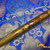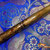 The "Golden Flames" fountain pen is a cigar shaped, oversize, clipless ebonite fountain pen, featuring a stunning pattern of colors made of clear urushi with goldpigment. It is a cartridge converter pen with a Nr. 6 steel nib (Jowo). The pen has been covered in layers of black base urushi lacquer (wet sanded with #1000 grid sandpaper after each application and curing). For the next step clear urushi and powdergoldpigment where applied and cured. The next layers where done with clear urushi and goldpigment, until the pen seemed to be almost brown in color. Once the urushi was completey cured, the pen was wet sanded until the golden flame pattern became visible and the gilding showed through, depending on the thickness of the lacquer. For the finishing fine urushi got applicated on the pen and wiped off with filtering paper. After a final curing period the lacquer was burnished and polished by hand with ever finer polishing pastes several times to a glasslike shine. Length of the production process: 3 months.